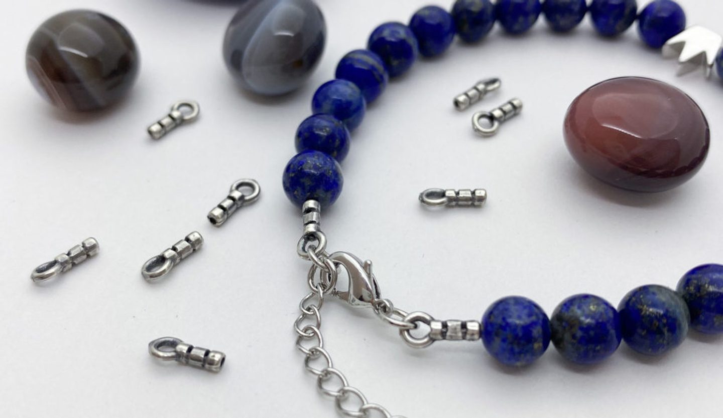 А теперь покажем эти кримпы в действии - мы взяли кримпы с петлей с внутренним диаметром 0,6 мм, тросик толщиной 0,6 мм и бусины 8 мм!