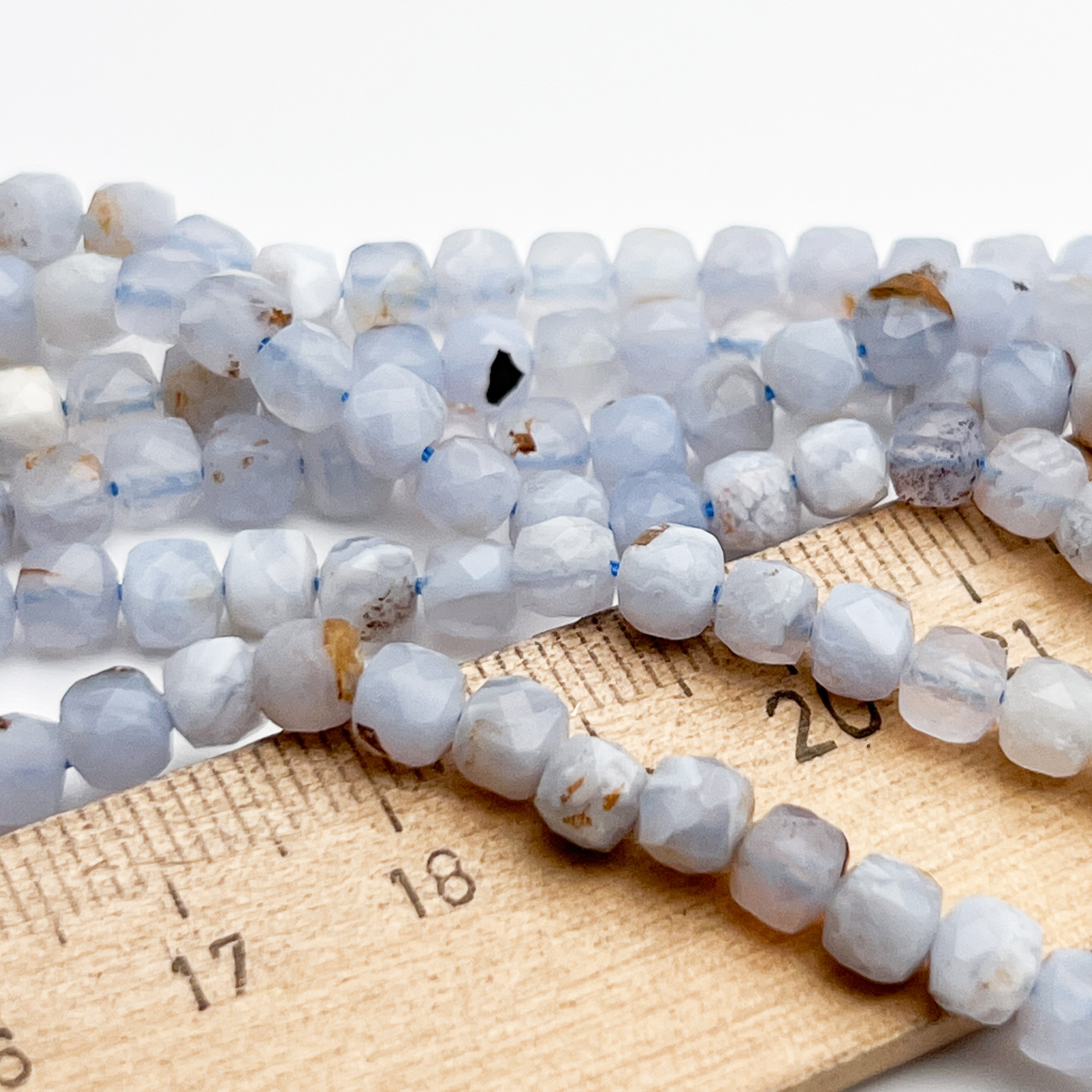 Есть ли данный товар - Агат голубой бусины ("Сапфирин"), куб с огранкой, размер около 4,4-4,6 мм, цена за 19-20 шт (1/4 нити) в вашем шоуруме в Санкт-Петербурге?