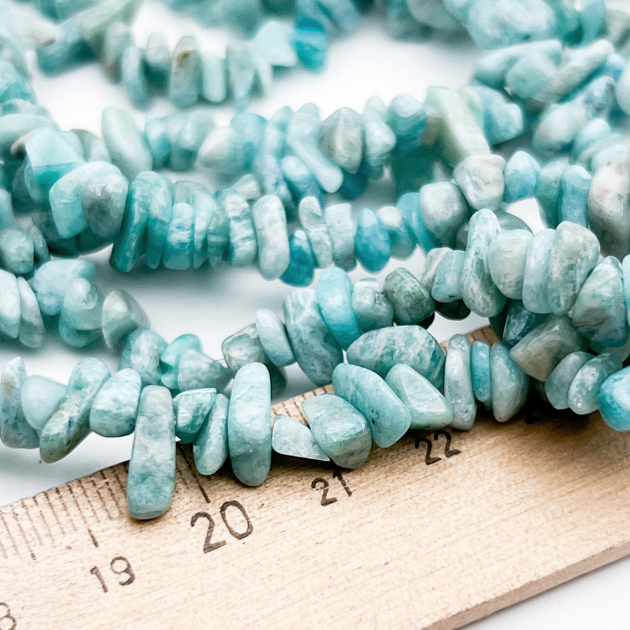 Бусины изготовлены из натурального амазонита (относится к полевым шпатам). Природный камень: не имитация, не прессованный и не искусственно выращенный материал.