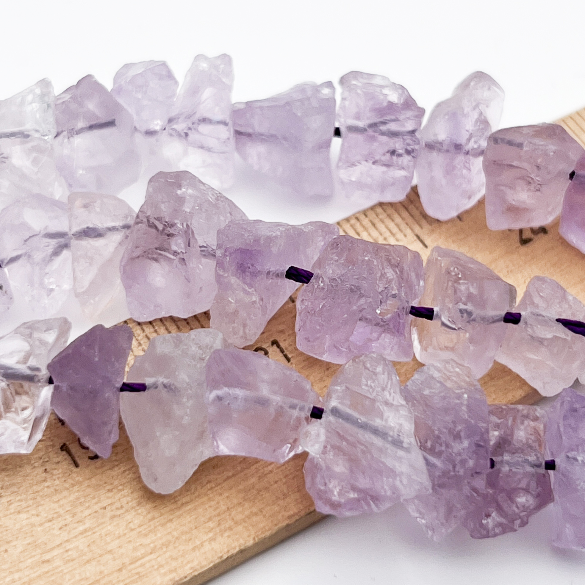 Есть ли данный товар - Аметист лавандовый необработанный бусины, размер около 6-9*11-13 мм, цена за 13 шт (1/4 нити) в вашем шоуруме в Санкт-Петербурге?