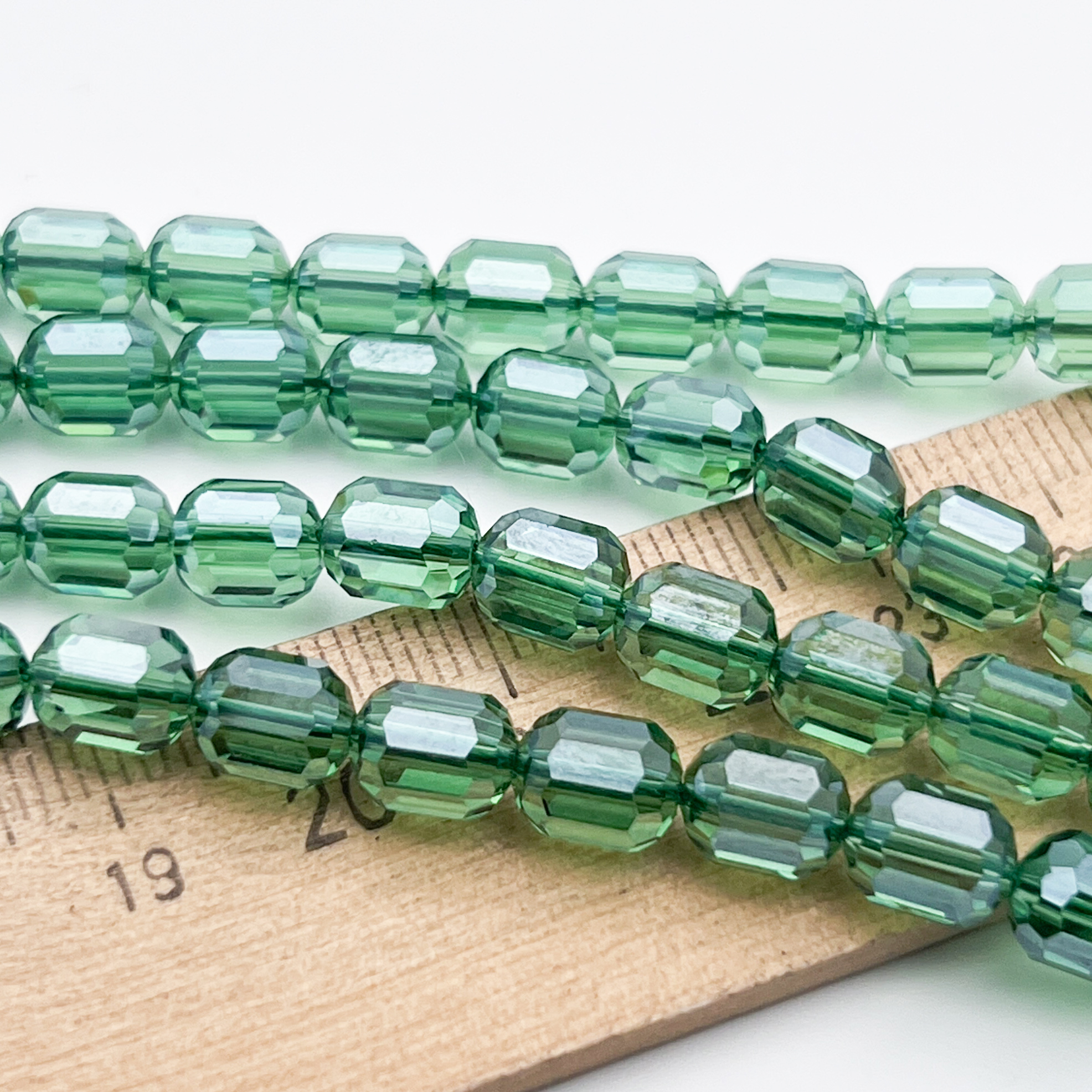 Есть ли данный товар - Бусина Бочонок, стекло, цвет зеленый, размер 7,7*6 мм, цена за 12-13 шт (1/4 нити) в вашем шоуруме в Санкт-Петербурге?