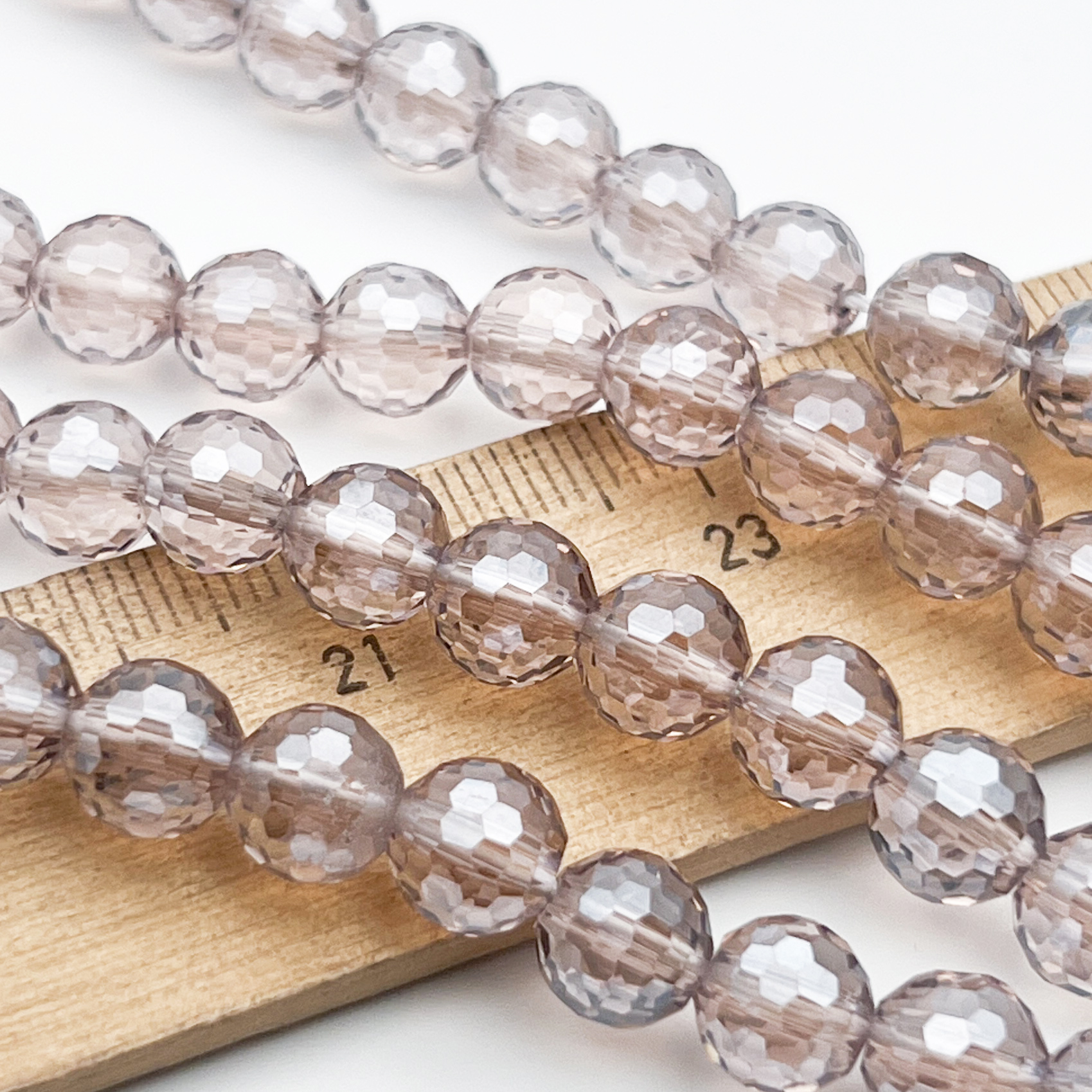 Есть ли данный товар - Бусина Шар с огранкой, стекло, цвет розовый дымчатый, размер около 7,5 мм, цена за 13 шт (1/4 нити) в вашем шоуруме в Санкт-Петербурге?