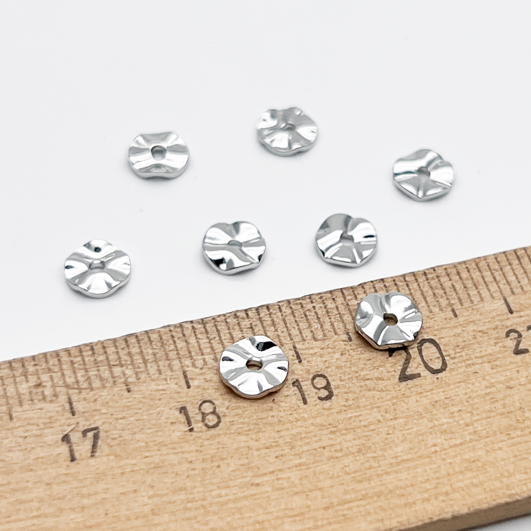 Есть ли данный товар - Бусина, цвет серебро (родий), размер 6 мм, толщина 0,9 мм, цена за 10 шт в вашем шоуруме в Санкт-Петербурге?