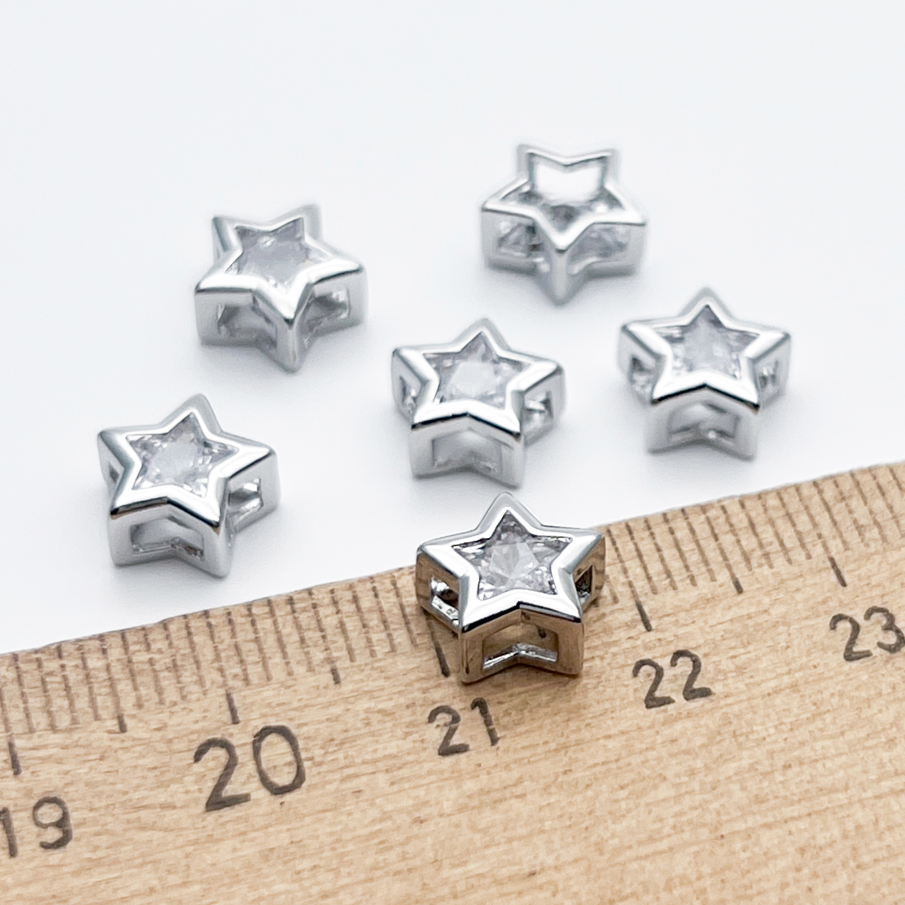 Есть ли данный товар - Бусина Звезда, цвет серебро (родий), фианит, размер 9*8,7 мм, цена за 1 шт в вашем шоуруме в Санкт-Петербурге?