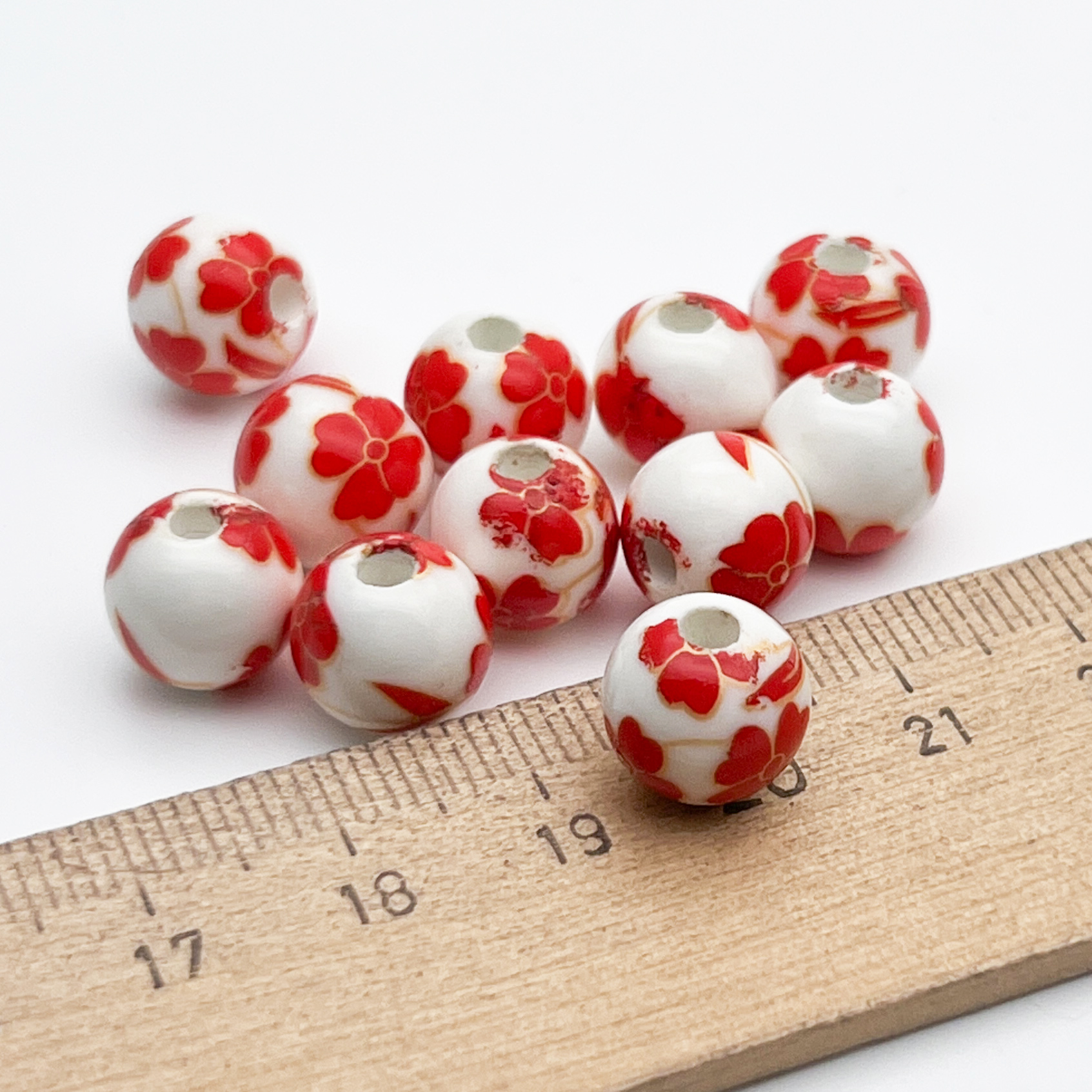 Есть ли данный товар - Бусины Шар с цветами, керамика, цвет красный, размер около 10 мм, цена за 1 шт в вашем шоуруме в Санкт-Петербурге?