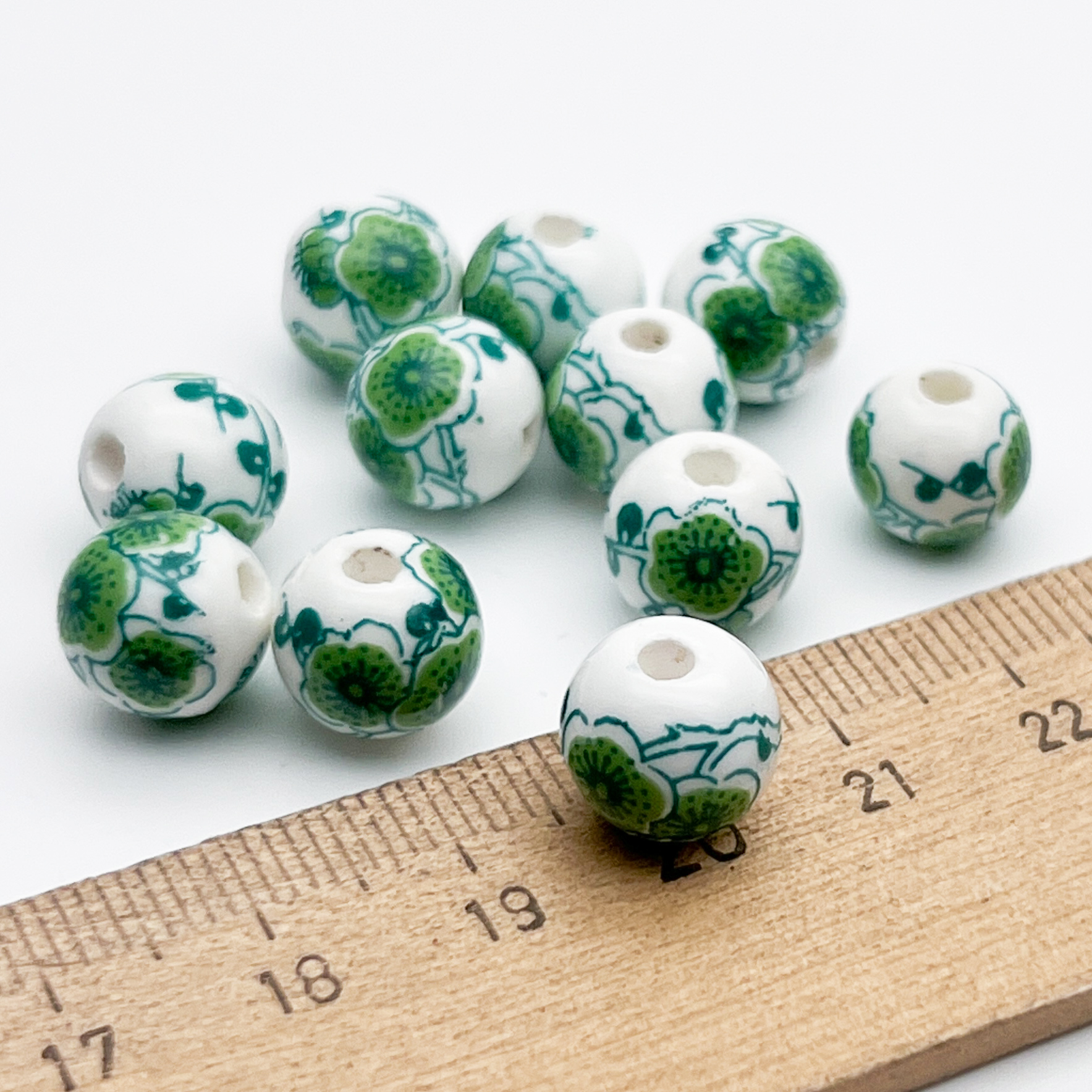 Есть ли данный товар - Бусины Шар с цветами, керамика, цвет зеленый, размер около 10 мм, цена за 1 шт в вашем шоуруме в Санкт-Петербурге?
