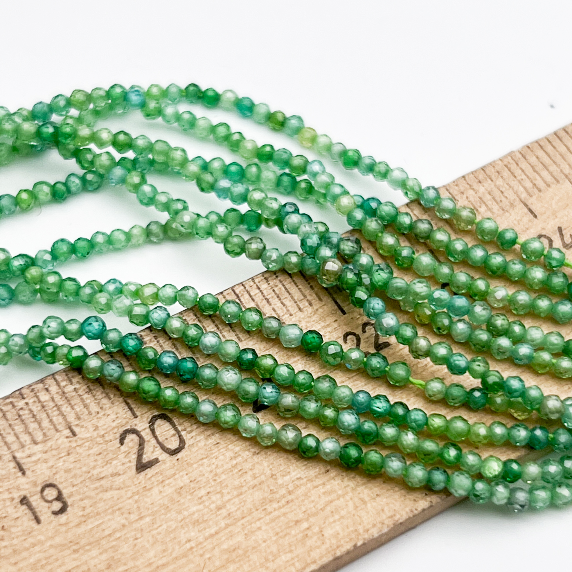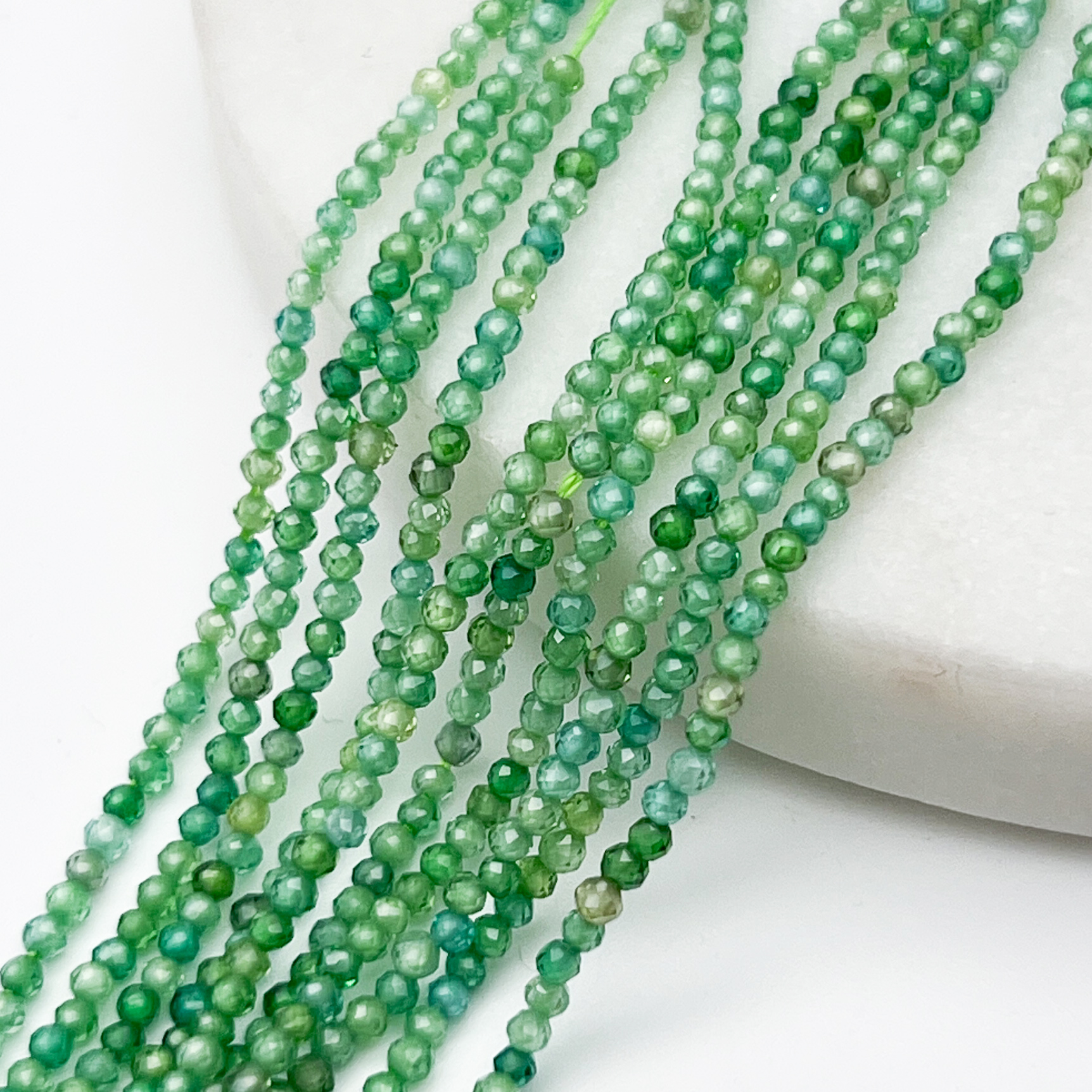 Есть ли данный товар - Фианит бусины (кубический цирконий), цвет зеленый микс, размер около 2 мм, цена за нить 38 см в вашем шоуруме в Санкт-Петербурге?