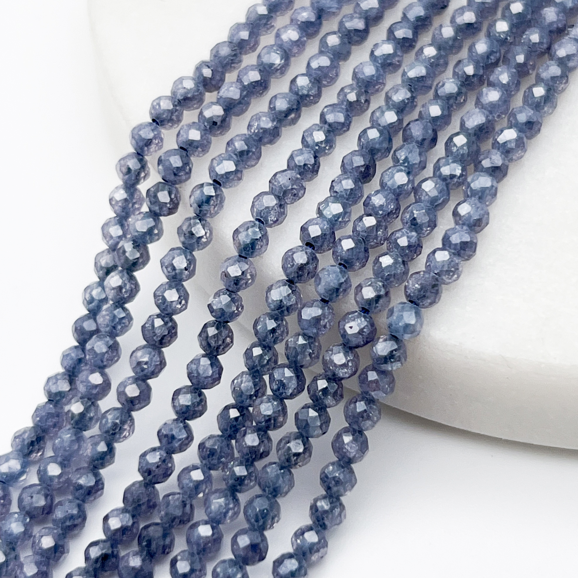 Есть ли данный товар - Фианит кракле бусины (кубический цирконий), цвет иолит, размер около 3 мм, цена за нить 38 см в вашем шоуруме в Санкт-Петербурге?