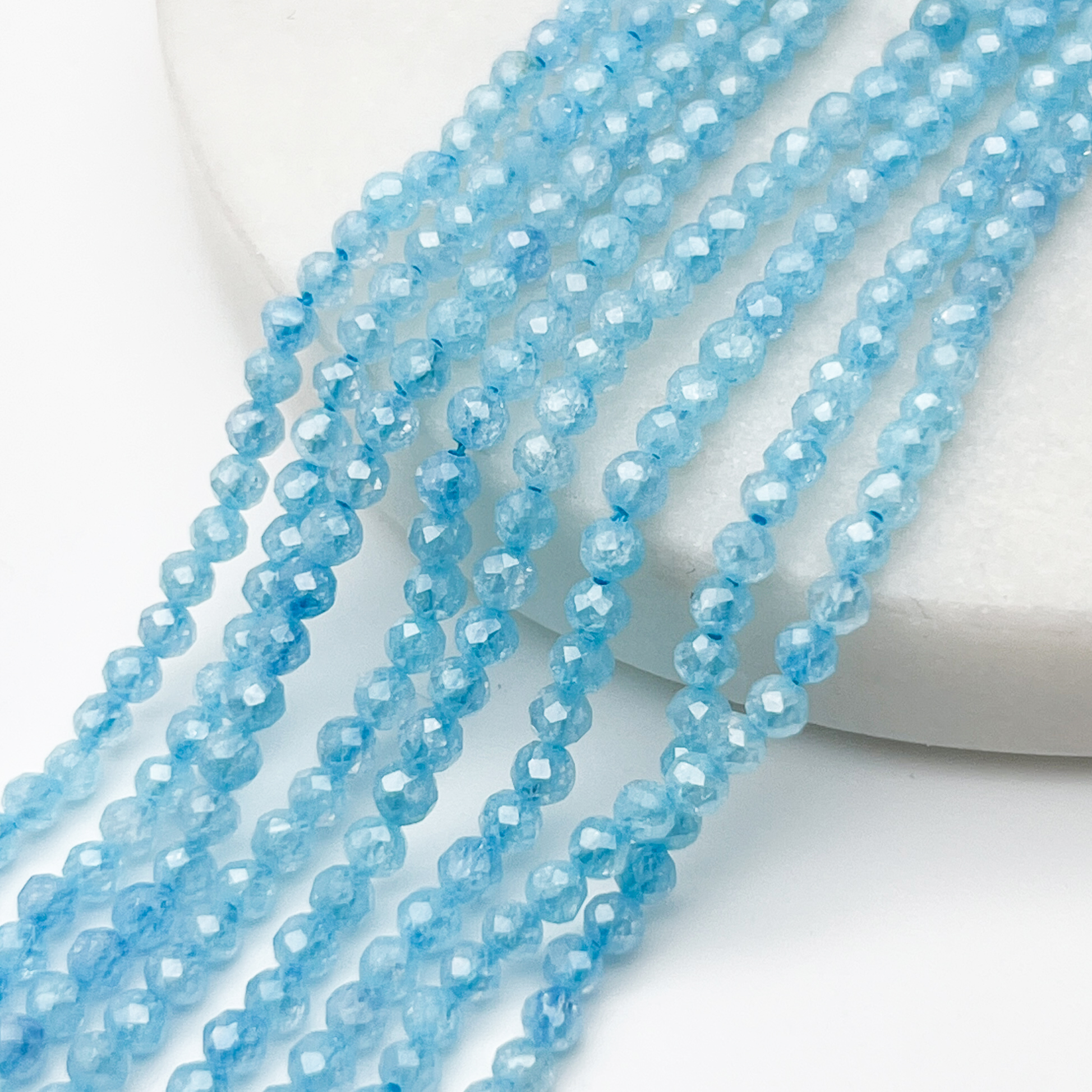 Есть ли данный товар - Фианит кракле бусины (кубический цирконий), цвет аквамарин, размер 3 мм, цена за нить около 130 шт (38 см) в вашем шоуруме в Санкт-Петербурге?