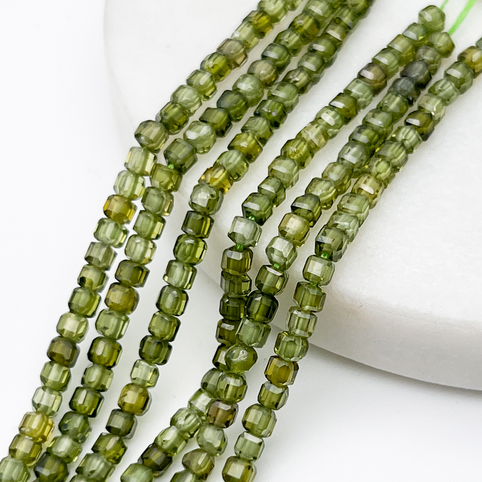 Есть ли данный товар - Фианит Куб бусины (кубический цирконий), цвет оливковый, размер около 3 мм, цена за нить 38 см в вашем шоуруме в Санкт-Петербурге?