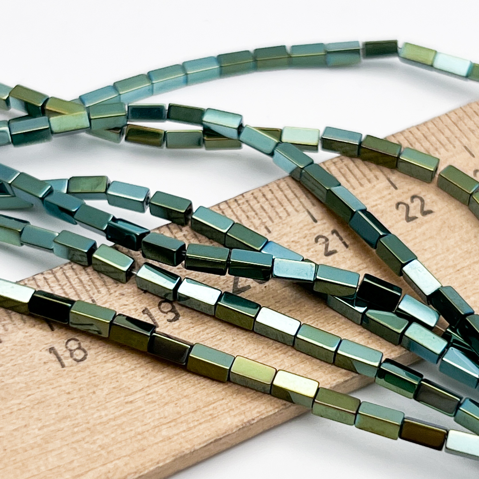 Есть ли данный товар - Гематит Брусок бусины (имитация), цвет зеленый, размер около 4*2 мм, цена за отрезок 19 см (1/2 нити) в вашем шоуруме в Санкт-Петербурге?