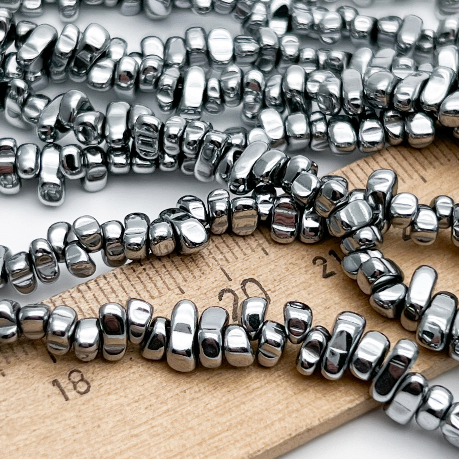 Есть ли данный товар - Гематит фриформ бусины (имитация), цвет серебристый, размер около 3-3,5*5-6,5 мм, цена за отрезок 19 см (1/2 нити) в вашем шоуруме в Санкт-Петербурге?