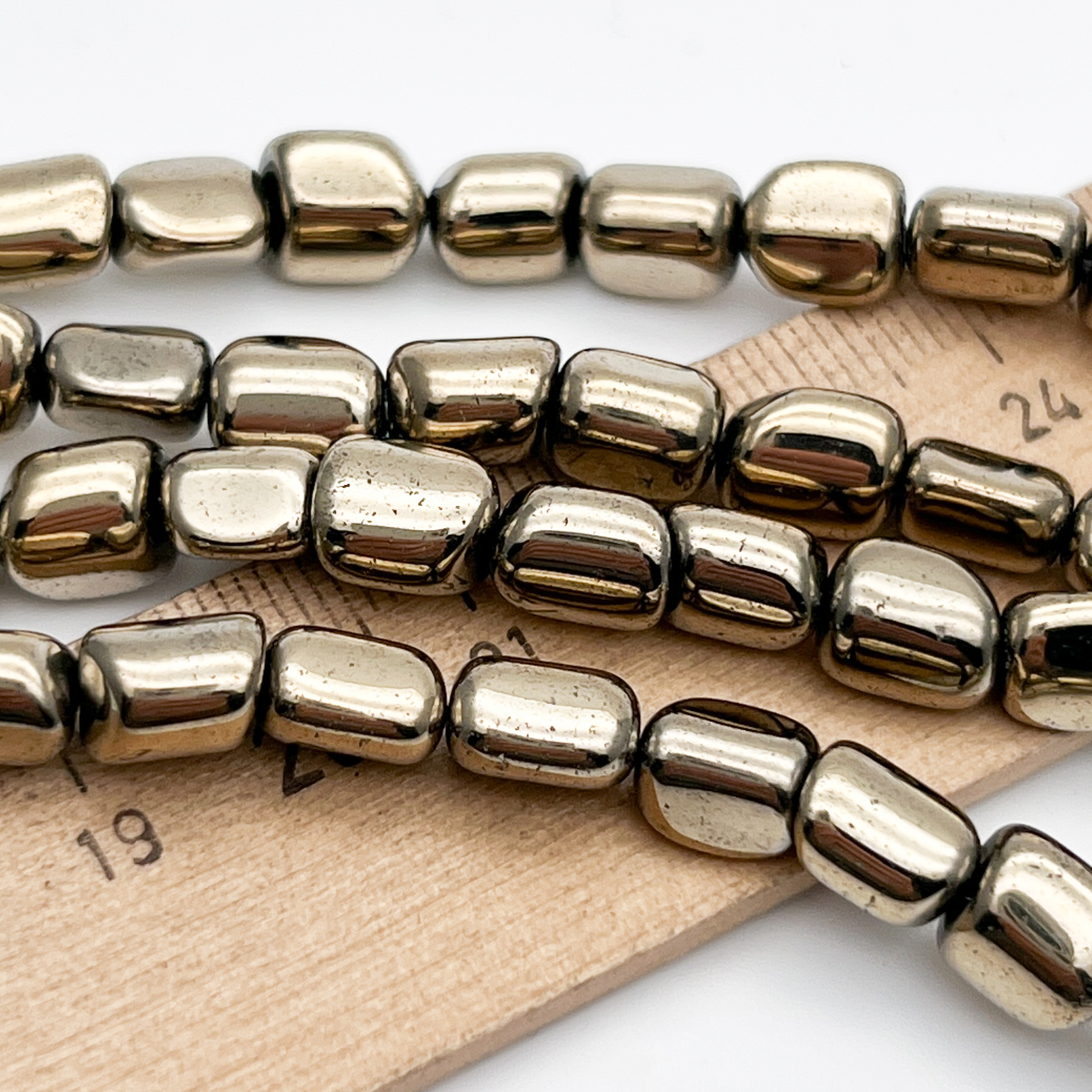 Есть ли данный товар - Гематит фриформ бусины (имитация), цвет золотистый, размер около 8-8,5*6,5-7,5 мм, цена за отрезок 19 см (1/2 нити) в вашем шоуруме в Санкт-Петербурге?