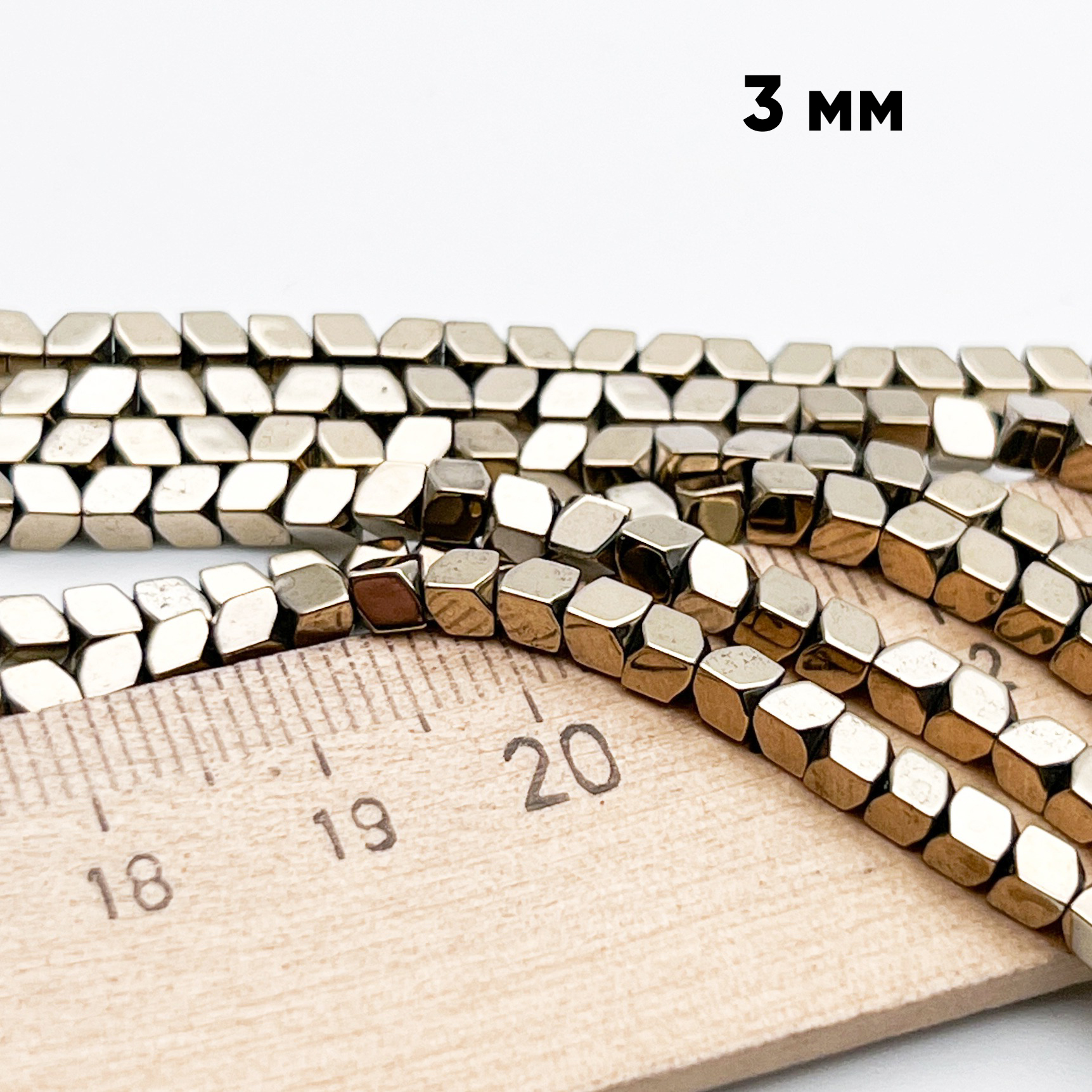Есть ли данный товар - Гематит Стрелка бусины (имитация), цвет золотистый, размер около 3 мм, цена за отрезок 19 см (1/2 нити) в вашем шоуруме в Санкт-Петербурге?
