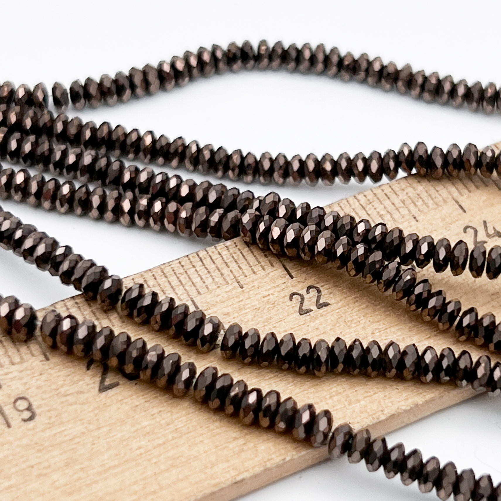 Есть ли данный товар - Гематит Рондель с огранкой бусины (имитация), цвет коричневый, размер около 1,5*3,5 мм, цена за отрезок 19 см (1/2 нити) в вашем шоуруме в Санкт-Петербурге?