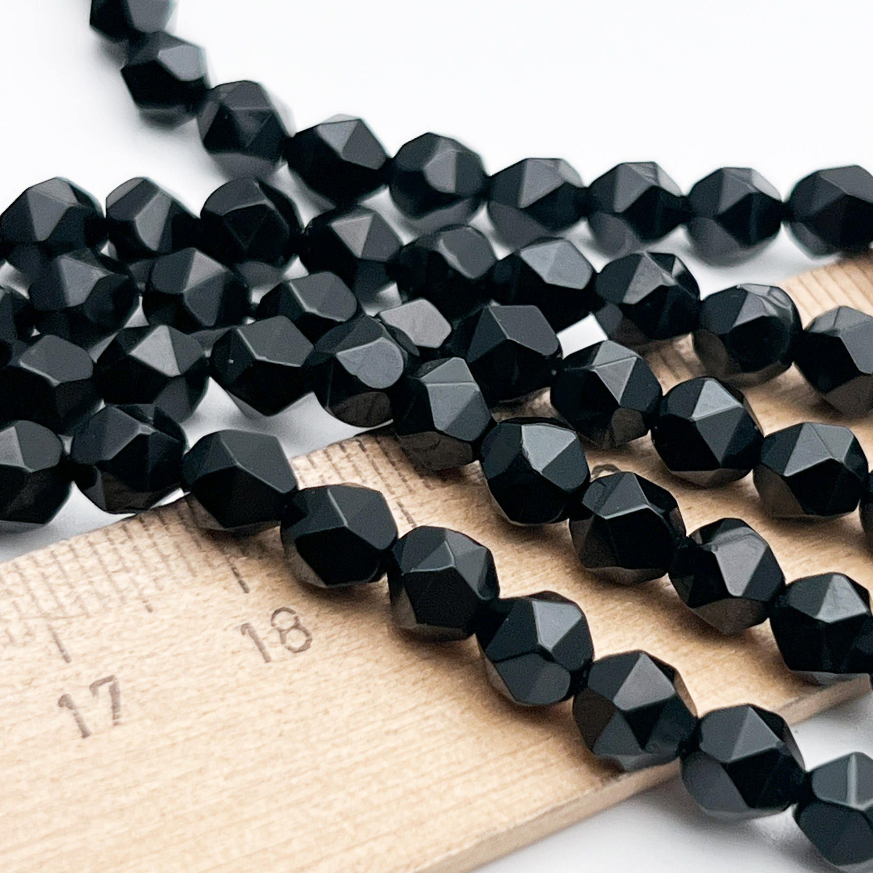 Есть ли данный товар - Халцедон тонированный бусины, крупная огранка, цвет черный, размер около 6 мм, цена за 15 бусин (1/4 нити) в вашем шоуруме в Санкт-Петербурге?