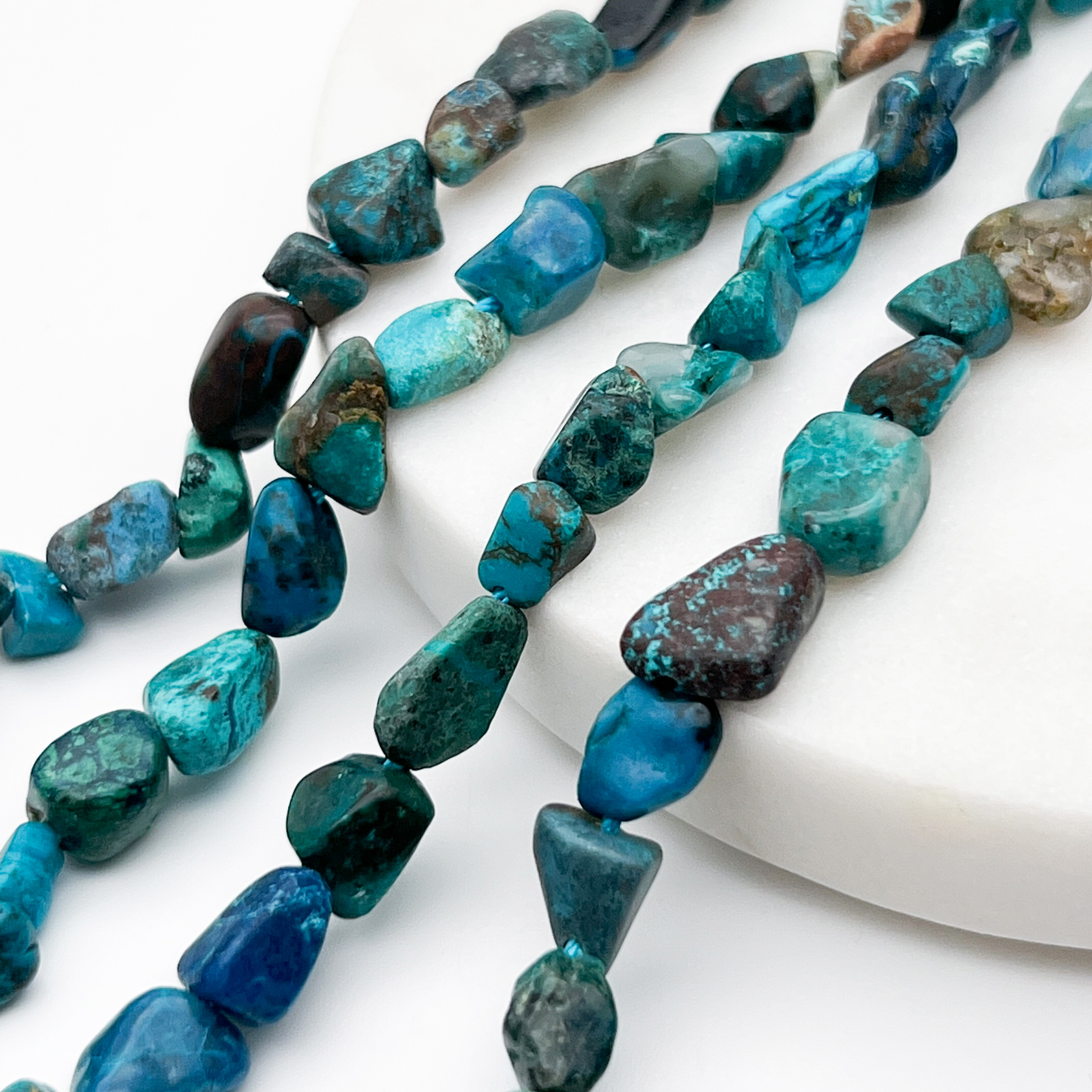 Есть ли данный товар - Хризоколла бусины, галтовка, размер около 6-9 мм, цена за нить 38 см в вашем шоуруме в Санкт-Петербурге?