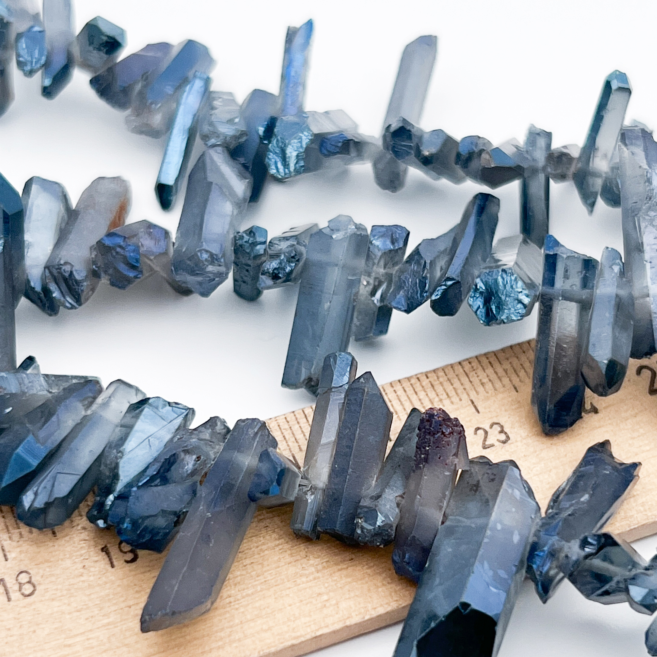 Есть ли данный товар - Кварц тонированный необработанные бусины, цвет синий, размер около 15-25*4-6 мм, цена за отрезок 9,5 см (1/4 нити) в вашем шоуруме в Санкт-Петербурге?