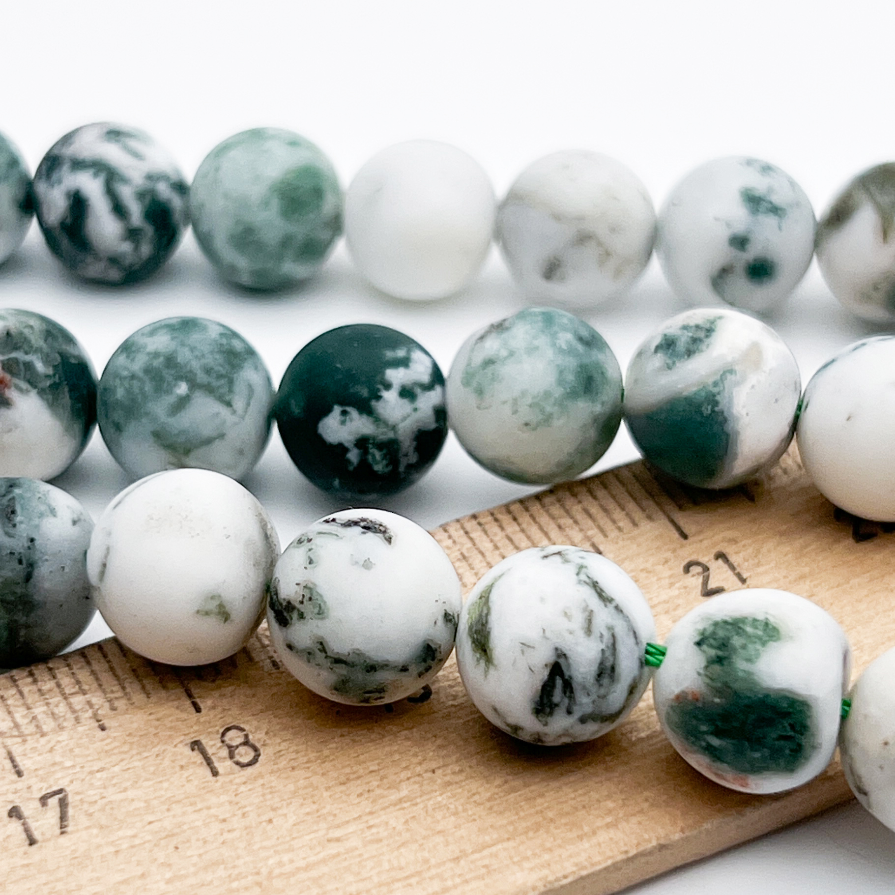 Есть ли данный товар - Моховый агат бусины (сорт Б), матовый шар, диаметр около 9,9-10,2 мм, цена за 18-19 шт (1/2 нити) в вашем шоуруме в Санкт-Петербурге?