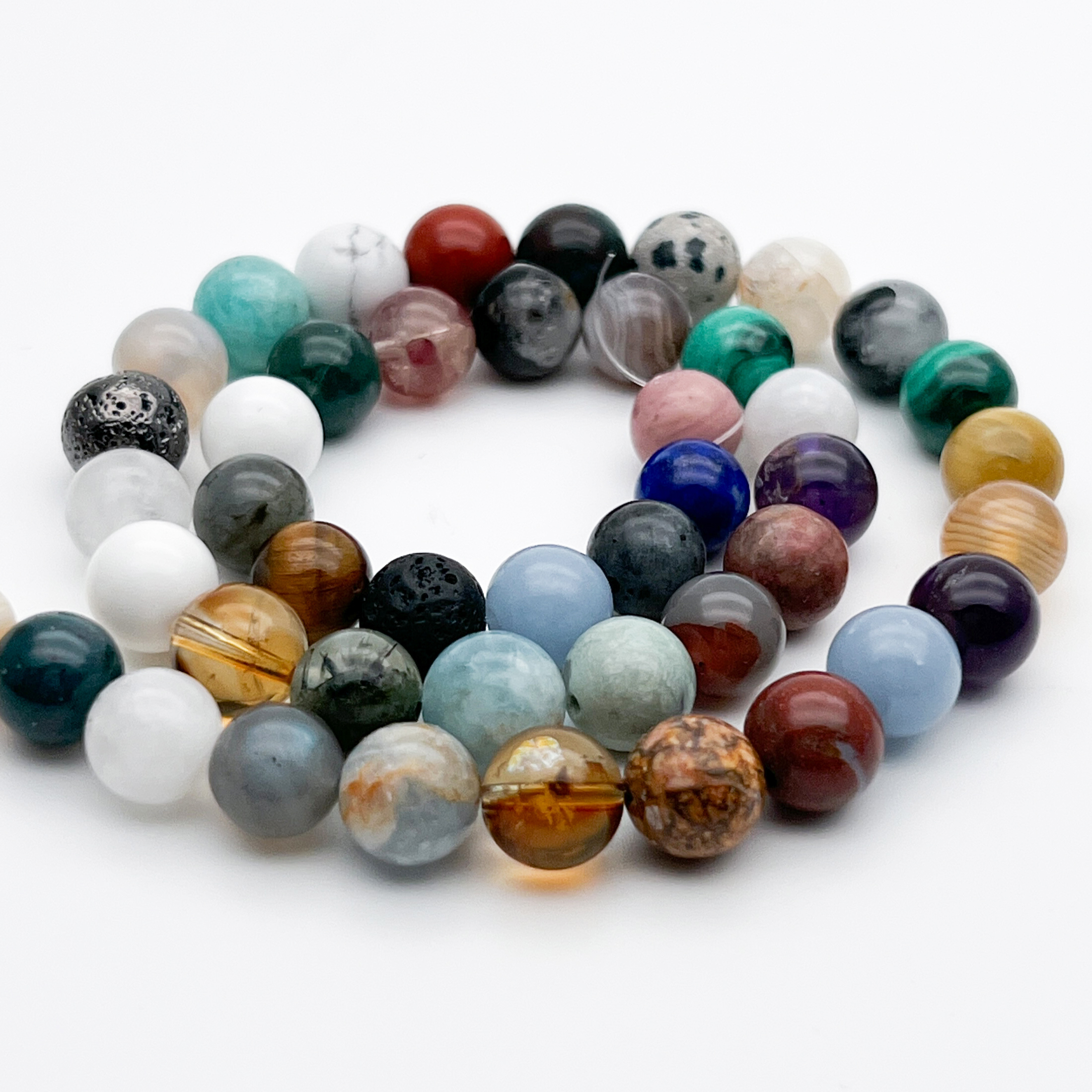 Производители бусин из натуральных камней закупают сырье (необработанные камни) по всему миру и обрабатывают в бусины на своих производствах. Информацию о том, откуда именно приехали камни, которые пошли на конкретную нитку, производитель не указывает. Поэтому сказать, откуда точно приехал камень, можно только в том случае, если месторождение у камня единственное (например, ларимар или чароит), либо камни с определенного месторождения имеют отличительные черты (например, агат Ботсвана).