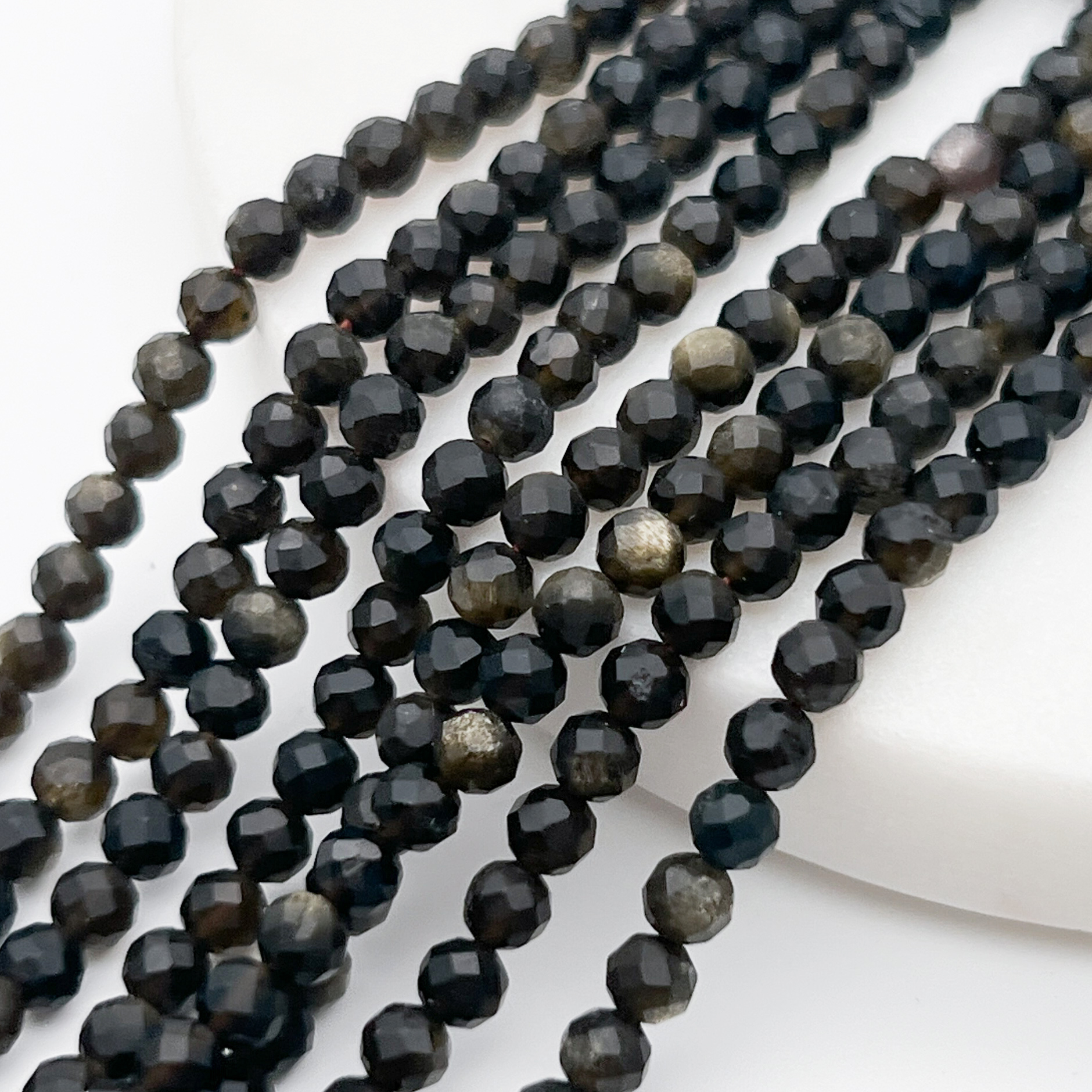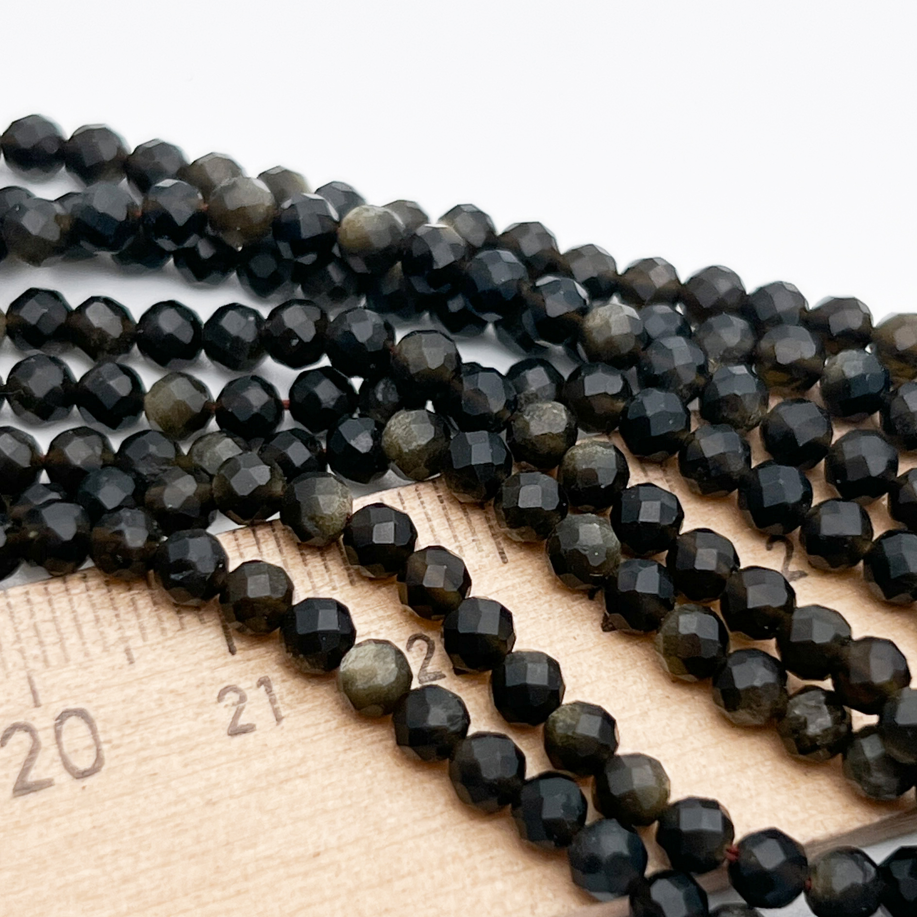 Есть ли данный товар - Обсидиан "Золотой" граненый бусины, диаметр около 3,8 мм, цена за отрезок 19 см (1/2 нити) в вашем шоуруме в Санкт-Петербурге?