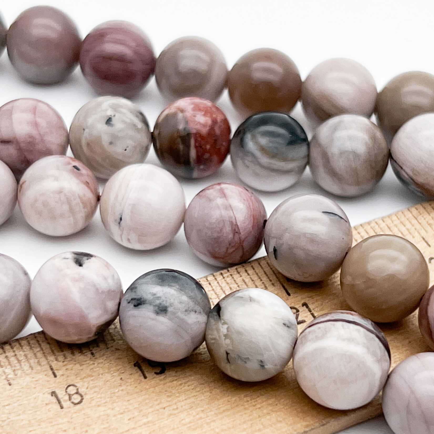 Есть ли данный товар - Окаменелое дерево бусины (халцедон), размер около 10,4-10,8 мм, цена за набор 9 бусин (1/4 нити) в вашем шоуруме в Санкт-Петербурге?