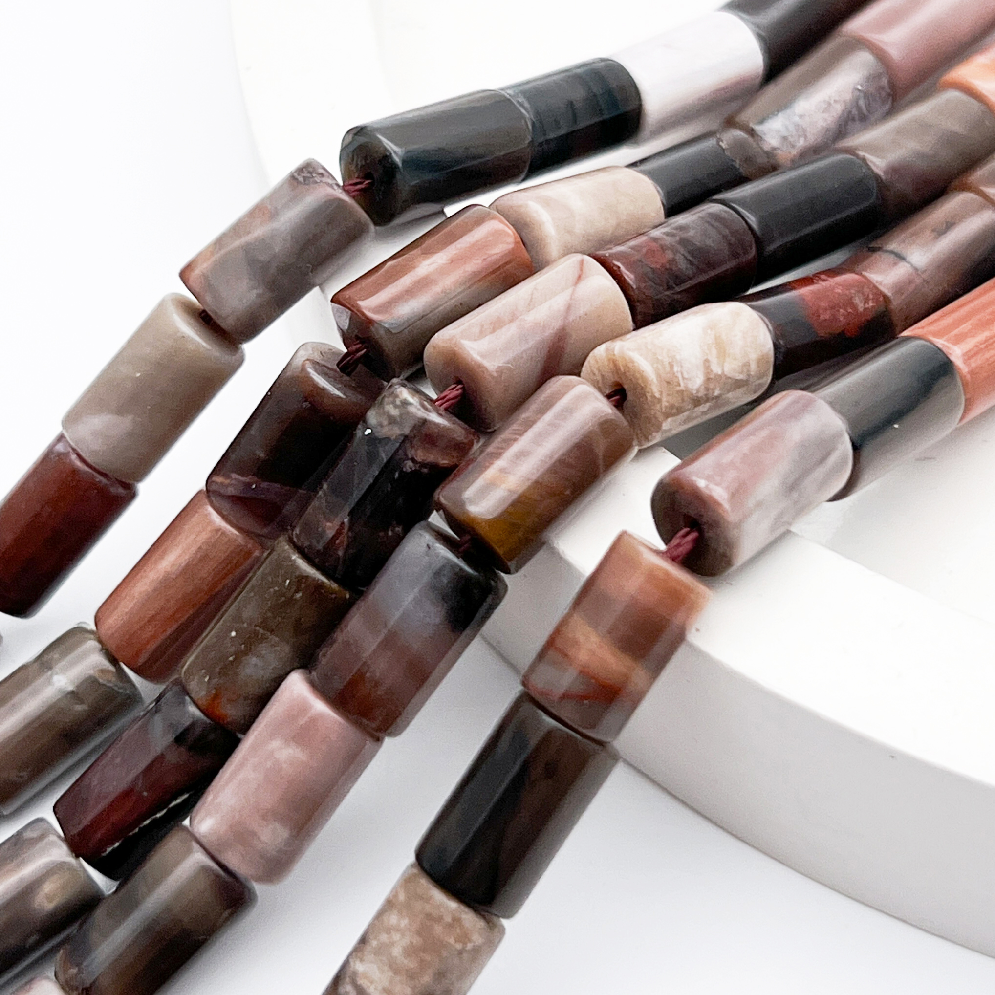 Есть ли данный товар - Окаменелое дерево бусины (халцедон), цилиндр, размер около 10*6 мм, цена за набор 9 бусин (1/4 нити) в вашем шоуруме в Санкт-Петербурге?