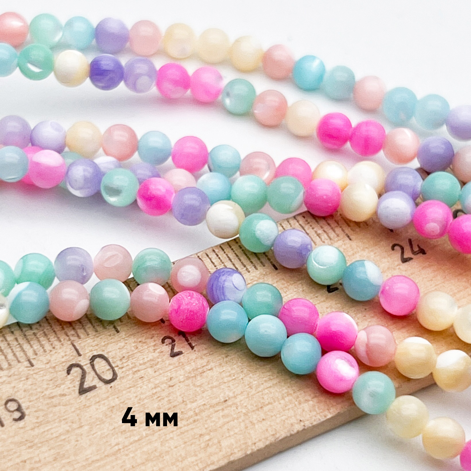 Перламутр Шар тонированный бусины, цвет микс, размер около 4,4 мм, цена за отрезок 19 см (1/2 нити) — нежные круглые бусины из натурального перламутра с богатым миксом оттенков и мягким перламутровым сиянием, которое делает каждое украшение выразительным и женственным; размер около 4,4 мм отлично подходит для тонких нитей, деликатных серег, утонченных браслетов и изящных вставок в колье, цена за отрезок 19 см (половина нити) помогает точно рассчитать расход материалов и комфортно планировать маленькие коллекции; натуральная структура каждой бусины добавляет глубину и характер, сочетание с металлом и камнями придаёт украшению профессиональный вид и уникальность, необходимую для авторских работ и продаж в онлайн-витрине; идеальный выбор для творческой женщины, которая ценит качество материалов и стремится выразить свой стиль в каждой детали; добавьте в корзину отрезок сейчас и начните новую серию украшений с тонким перламутровым акцентом.
