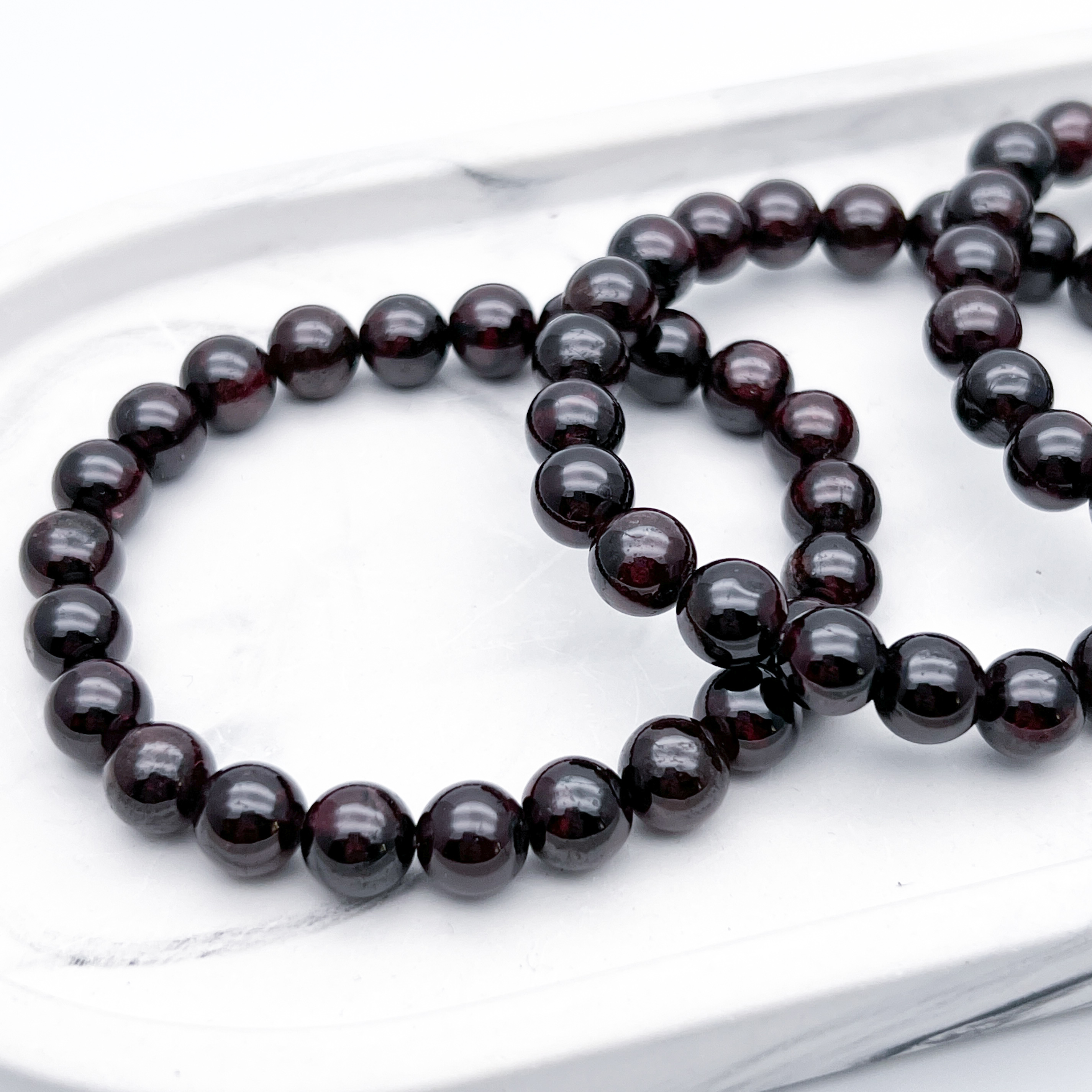 Бусины имеют насыщенный темно-бордовый оттенок, и при разном освещении могут смотреться как более красными (дневной свет), так и близкими к черному (желтый искусственный свет).