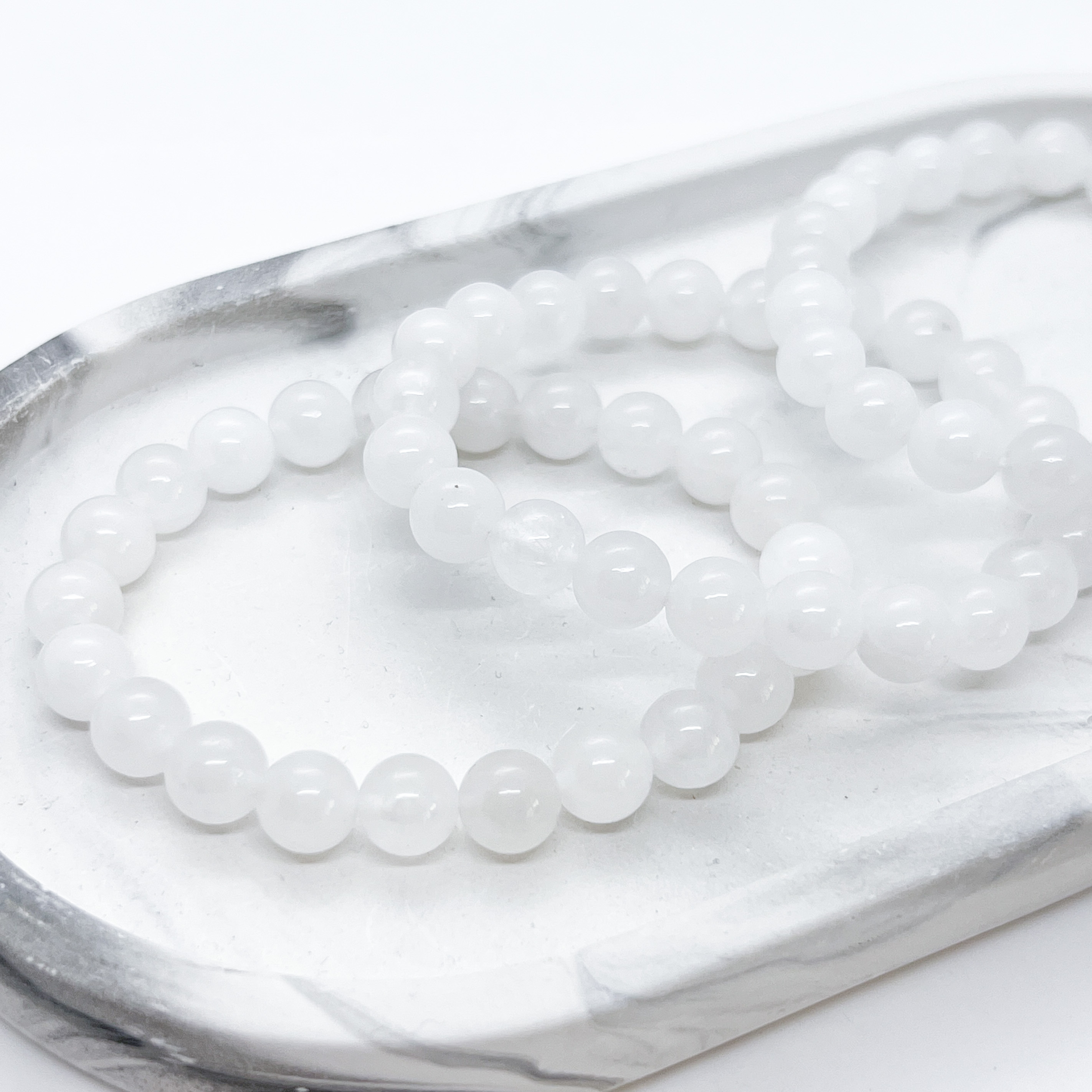 Браслет изготовлен из бусин натурального белого кварца. Это полностью природный камень: не тонированный, не прессованный, не искусственно выращенный, не имитация.