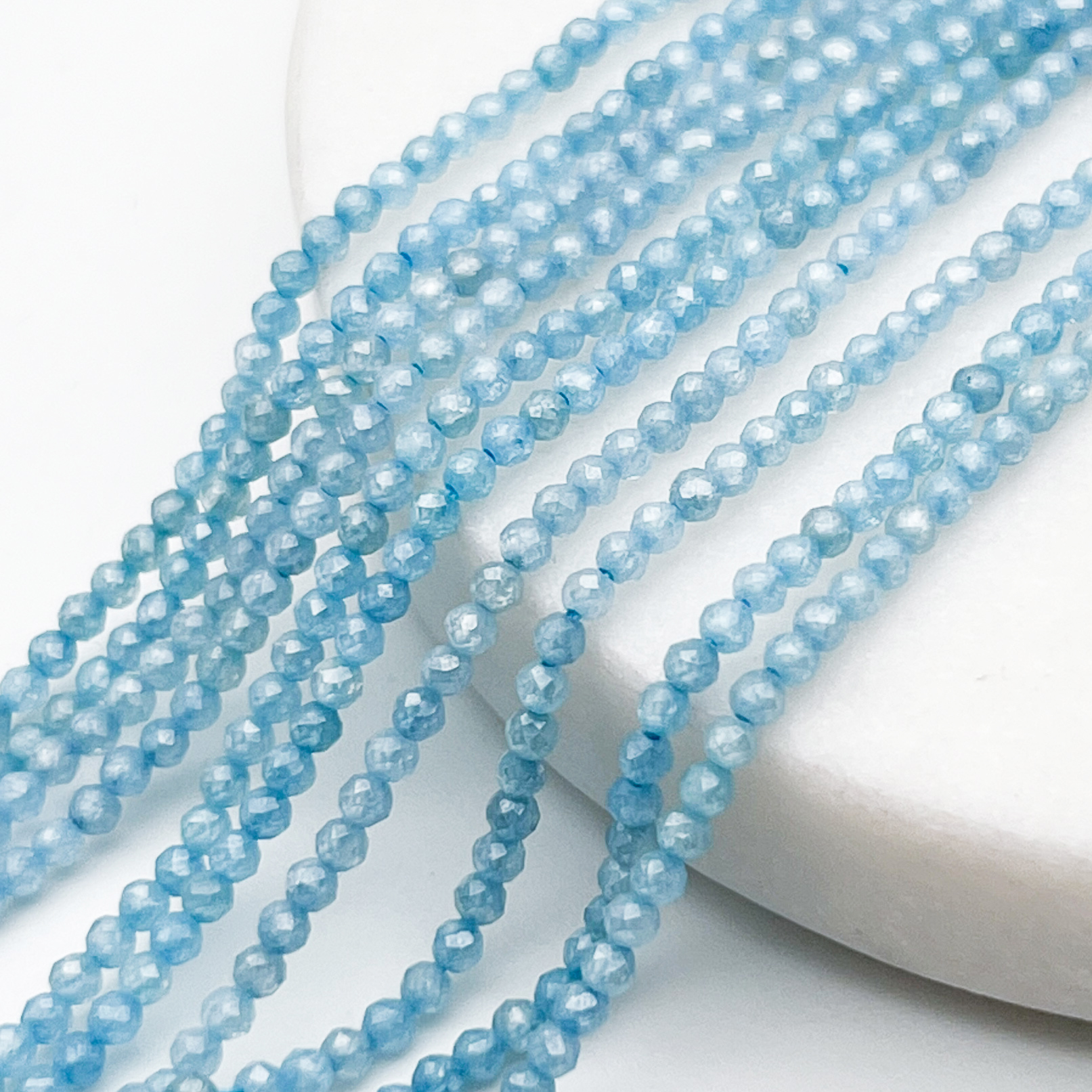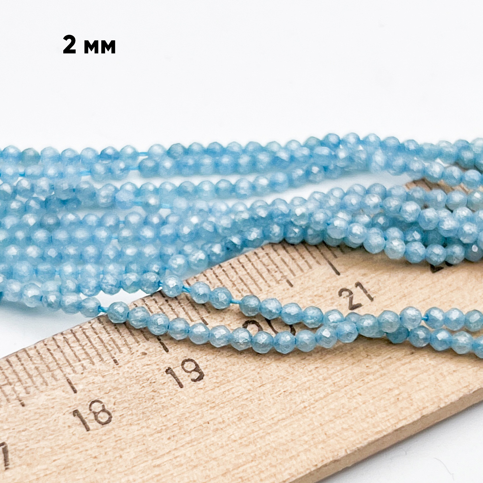 Фианит (кубический цирконий), цвет голубой, размер 2 мм, цена за нить около 195 шт (38 см)