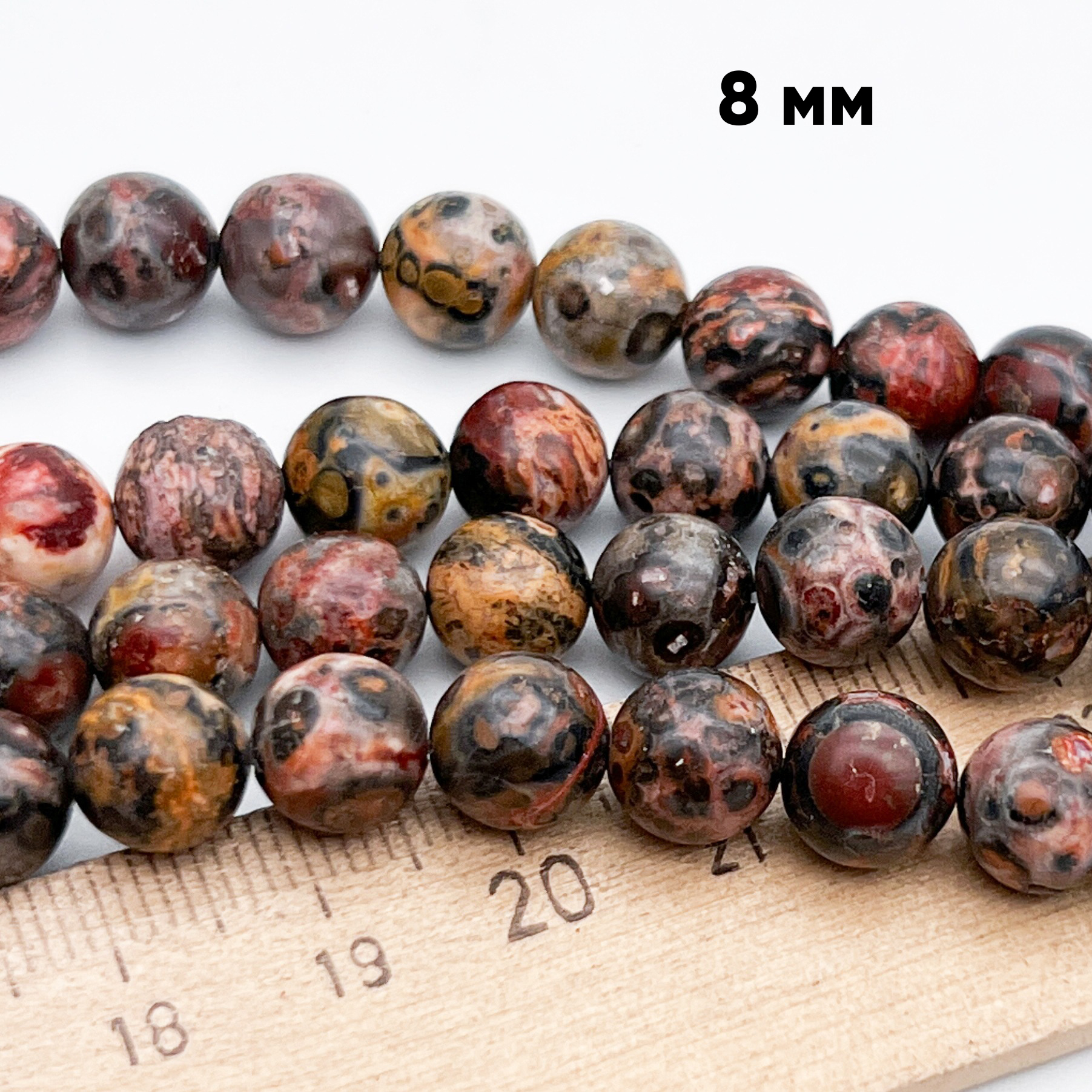 Бусины выполнены из натурального камня риолит. Цвет природный, не усилен дополнительными тонировками.