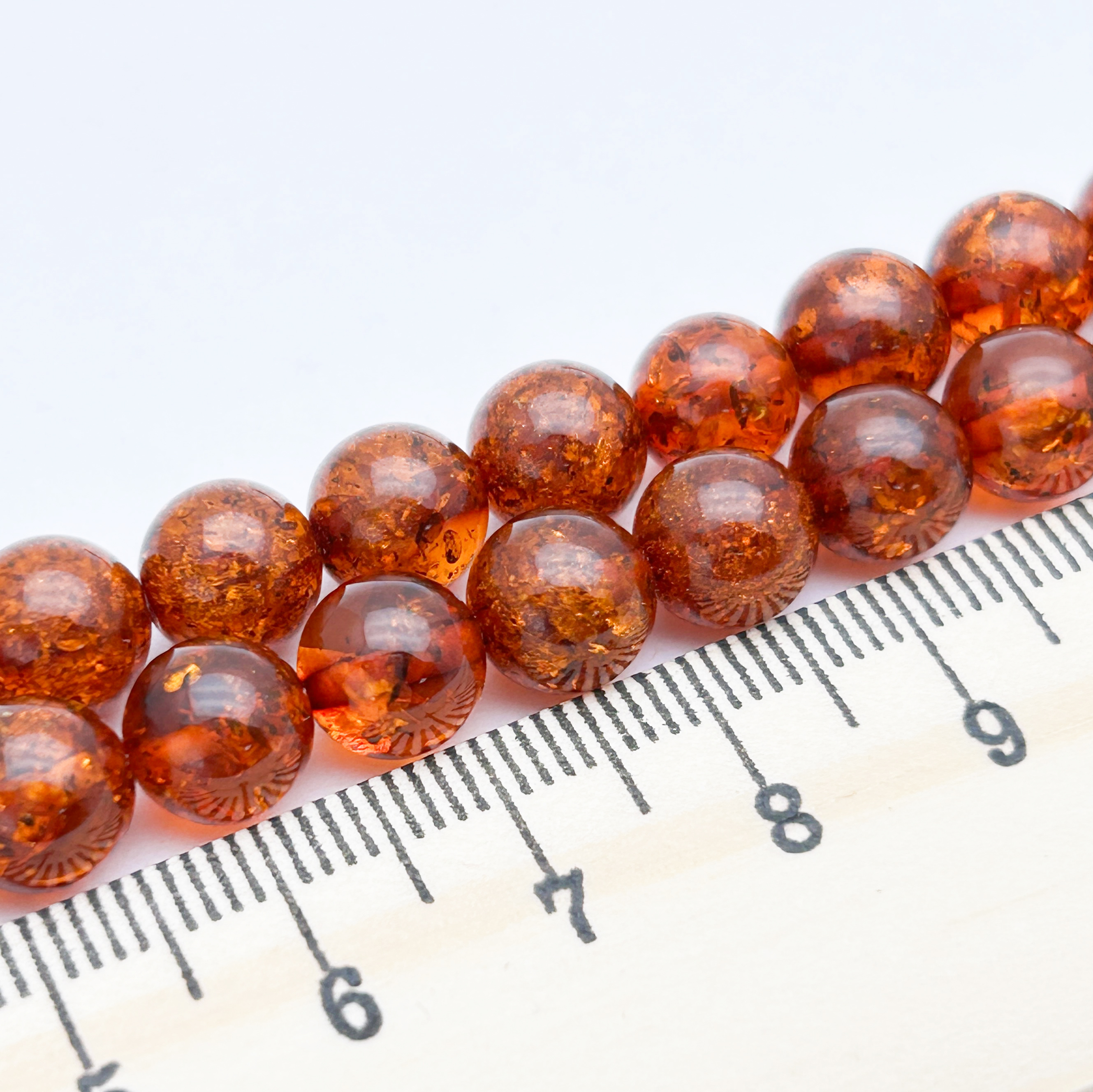 Янтарь бусины, гладкий шар, размер 8 мм, цена за 11 шт (1/4 нити)