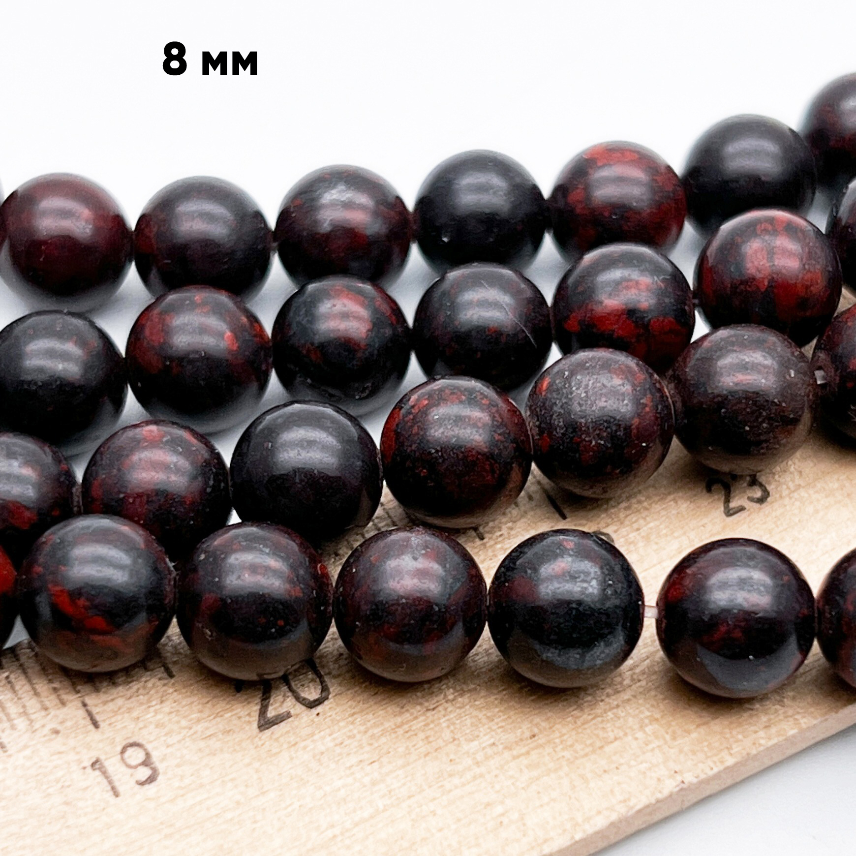 Бусины изготовлены из породы, состоящей из гематита и халцедона красного оттенка. Такой камень можно отнести к яшмам. Обратите внимание, что данные бусины отличаются самым высоким содержанием натурального гематита среди всех камней, представленных в нашем магазине.