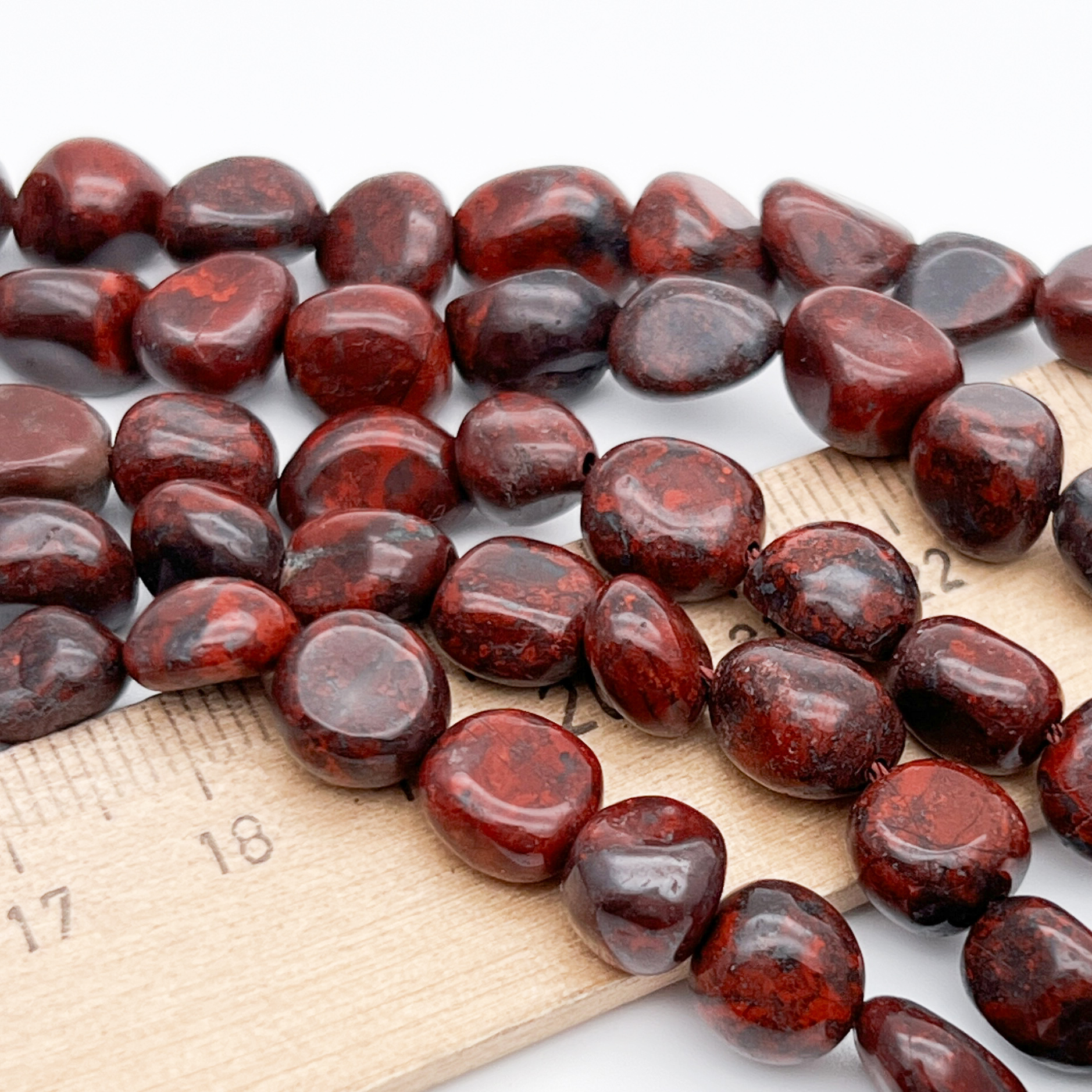 Бусины изготовлены из натуральной яшмы. Это порода, сложенная из халцедона, гематита и кварца.
