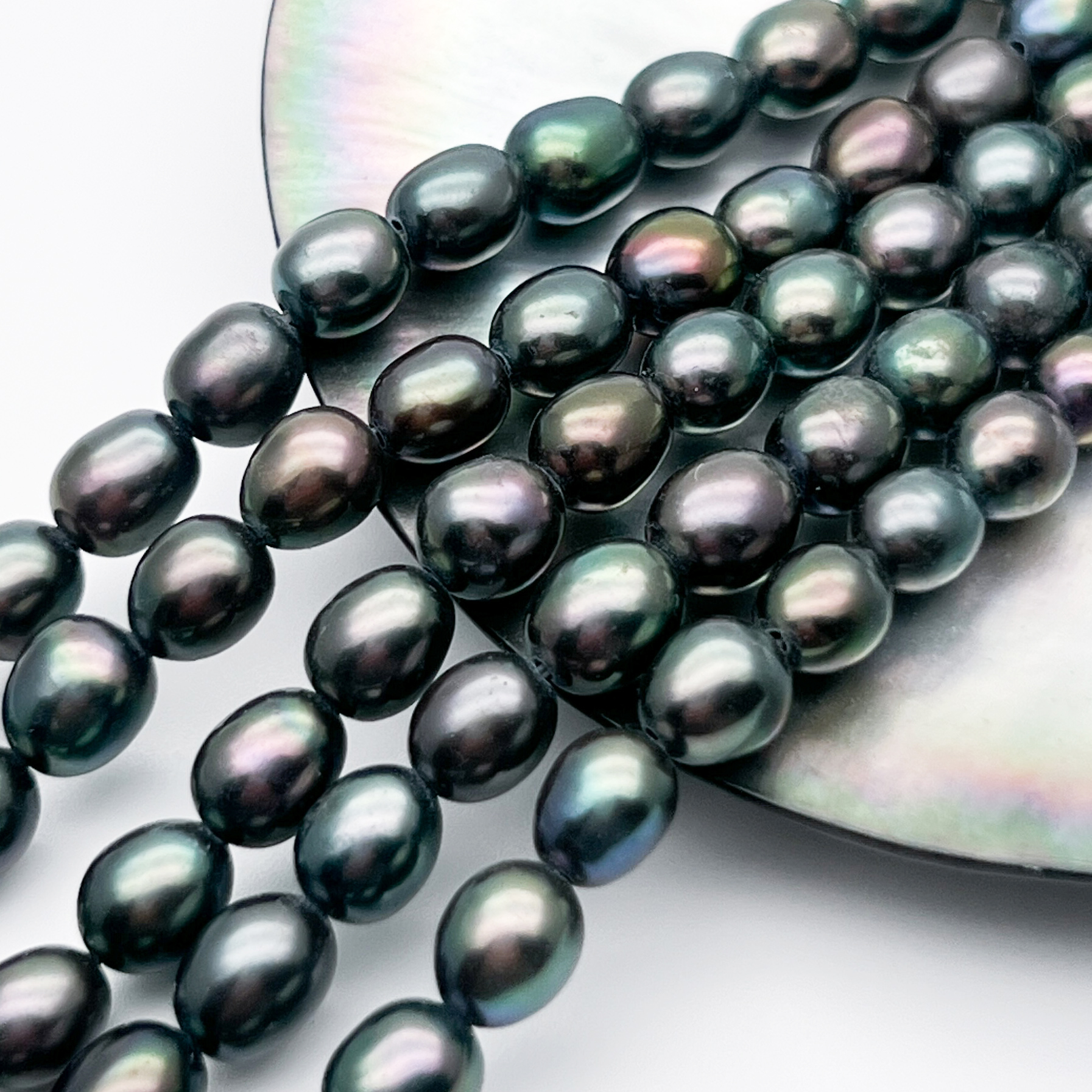 Есть ли данный товар - Жемчуг бусины, цвет черный AB, размер около 6-7,5*6-6,5 мм, цена за отрезок 18 см (1/2 нити) в вашем шоуруме в Санкт-Петербурге?